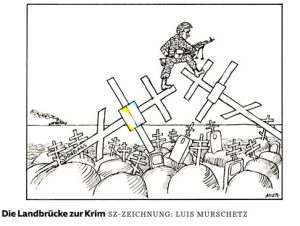 Über die Forderungen, die Rußland für ein Verhandlungsergebnis stellt, gibt es inzwischen nur Wiederholungen: ein Frieden, auf den der souveräne Staat Ukraine eingehen kann, ist bisher mit Putin nicht zu machen, weil die Souveränität und die territoriale Integrität (also inklusive des für die Lebensfähigkeit der Ukraine notwendigen Donbas) zusammengehören und nicht mit den Kriegszielen Putins korrespondieren. Die Krim könnte ein Preis sein, auf den man sich wohl einlassen müsste, wenn sich Putin unter dem Druck eigener Verluste an der Front und dem inzwischen wachsenden Druck einiger Oligarchen (besonders derjenigen, die schon Oligarchen vor Putins Präsidentschaft waren)