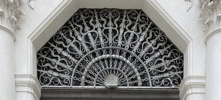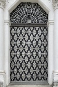 ,obgleich auch barock, von eher schlichter Schönheit die zweitürmige Fassade (die Türme sind 68 m hoch – auch wichtig für den Überflug meiner Drohne – siehe Video), trete ich durch die geometrisch-schöne Tür ein und versuche zunächst, mich in der sehr aktiven Baustelle zurechtzufinden.