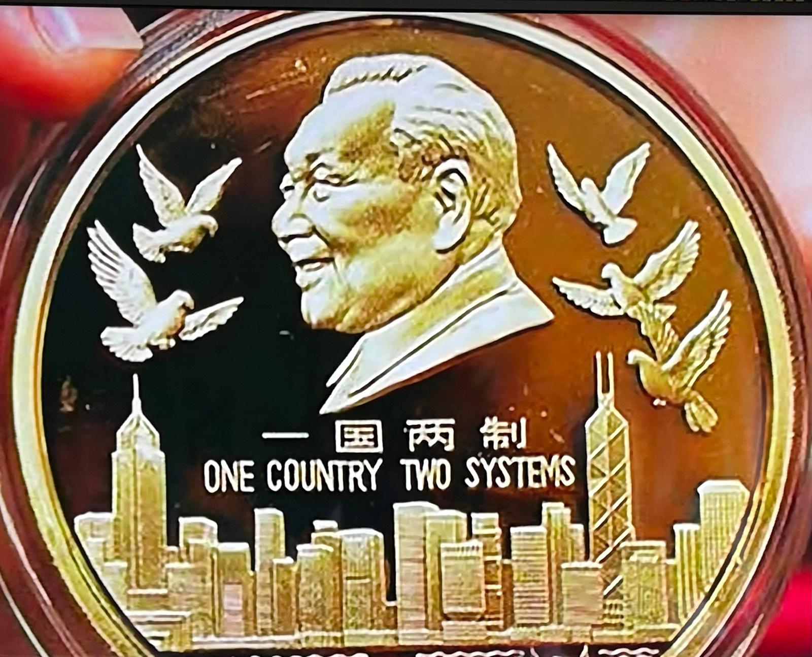 In 1982 handelte Deng mit Margaret Thatcher die Übernahme der Kronkolonie Hong Kong in 1997 durch die Volksrepublik China aus. Dengs Konzept beinhaltete nicht das Ziel der gleichmachenden Vereinigung Hong Kongs mit Mainland China, sondern ganz nach Dengs wirtschaftsliberalem Konzept, daß das Mainland in den 50 Jahren während des Übergangs „One Country-Two Systems“ von Hong Kong lernt, wie man zu Wohlstand kommt. Deng starb in 1997.