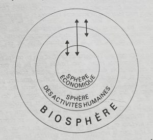 In L’Economique et le Vivant (1979), also vor 44 Jahren, erklärt Passet: De facto ist die Wirtschaftssphäre nur ein Subsystem des menschlichen Systems, das wiederum nur ein Subsystem der Biosphäre ist.“