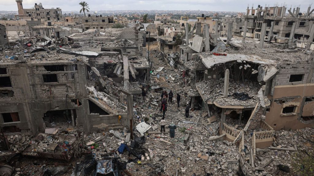70% der 439.000 Wohnungen/Häuser in Gaza zerstört (Wallstreet Journal); von den 36 Hospitälern Gazas sind noch drei funktionsfähig – fatal für die Überlebenden; 2/3 der Schulen sind zerstört oder schwer beschädigt, ebenso Kirchen und 100 Moscheen‘.
