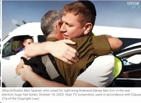 Yair Golan, 61, (siehe mein Blog im Dezember … unverändert mein „Favorit“ für den Top Job in Israel) traf während seines privaten Einsatzes im Massaker-Chaos am 07.Oktober auf den jungen ultraorthodoxen Ersthelfer Meir Spanier, der sich der Kamera zuwandte und sagte: