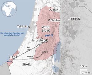 Eine vorläufige 2-Staatenlösung ist eine Etappe und kann nur eine solche sein, weil ein souveränes Palästina auf einem zweigeteilten Territorium (Westjordanland und Gaza) nicht konsolidiert, also auf Dauer lebensfähig sein kann.
