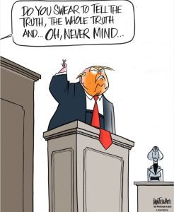 Das für ihn und sein Unternehmen teuerste Strafverfahren kostet Trump fast eine halbe Milliarde $. Sein Unternehmen hat zum Zweck der Kreditzinsenminderung und zur Erlangung günstiger Versicherungsprämien den Wert seiner Liegenschaften etc.betrügerisch falsch angegeben.
