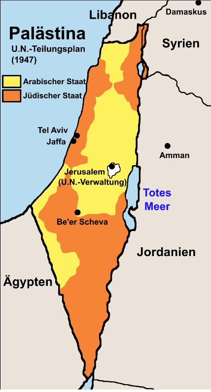 If so which borders ? E.g., – per Wikipedia – the two states the UN General Assembly defined in November of 1947 when that body decided to divide Palestine into an Arab and a Jewish state (the State of Israel founded a year later) with Jerusalem being placed under UN administration as a „corpus separatum“.