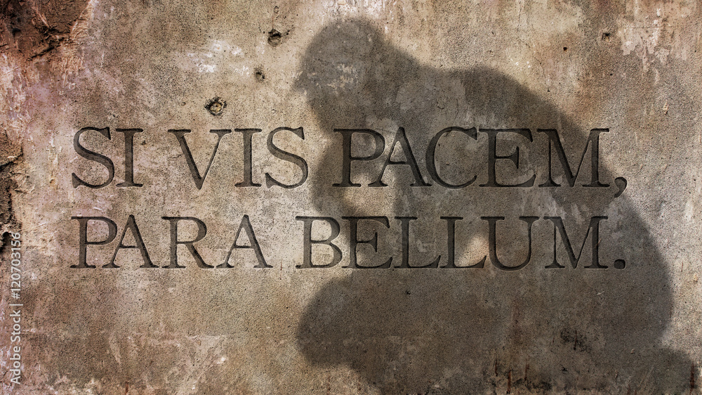 Wir beteiligen uns hier nur mit Waffen nicht nur, weil wir zu lange an das Ende der Geschichte geglaubt haben und uns noch nicht einmal für einen Verteidigungskrieg gerüstet haben, sondern weil wir nicht direkt angegriffen wurden (memento Vegetius: „Wenn du Frieden willst, bereite den Krieg vor“ – Eintrag im lateinischen Urtext auf einem Wandbild, das einen darüber sinnierenden Menschen zeigt).