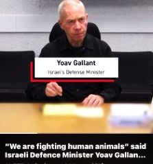 „Wir verhängen eine vollständige Belagerung über die Stadt Gaza. Es gibt keinen Strom, keine Lebensmittel, kein Wasser, keinen Treibstoff, alles ist geschlossen. Wir kämpfen gegen menschliche Tiere und handeln entsprechend.“
