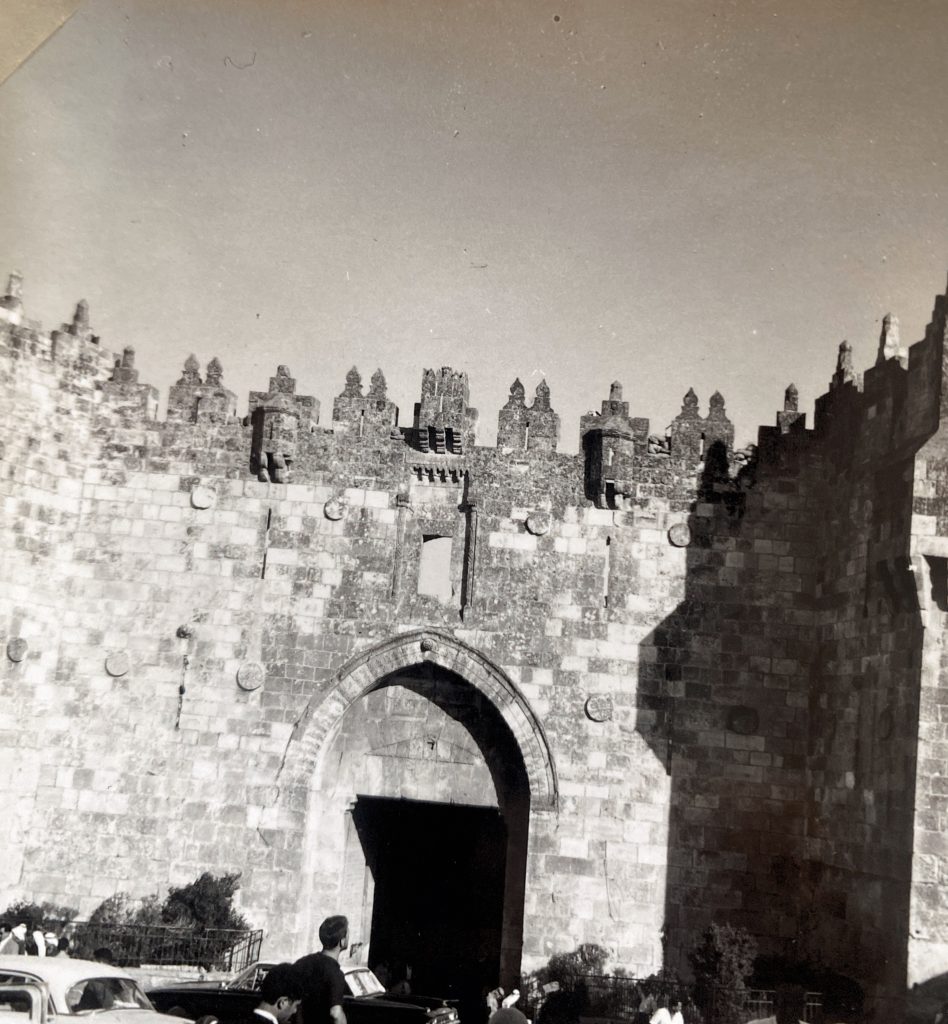 Rechts: das Foto zeigt das Damaskus-Tor im damals jordanischen Teil Jerusalems … und mich staunend (1961). Das war damals noch der arabische Teil der geteilten Stadt..