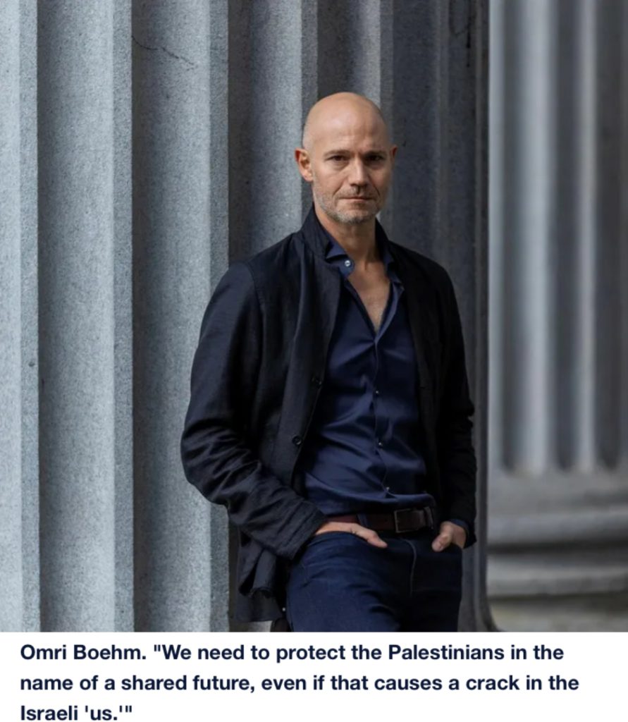 Omri Boehm hat uns Europäer ermahnt: wir müssen uns in eigenem Interesse und natürlich dem Interesse der kriegs- und terrorerschöpften Menschen dort für eine Lösung des Israelisch-palästinensischen Konflikts einbringen.